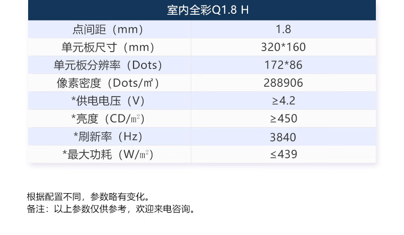 像素点距:1.8mm(高密度设计,画面细腻无颗粒感)