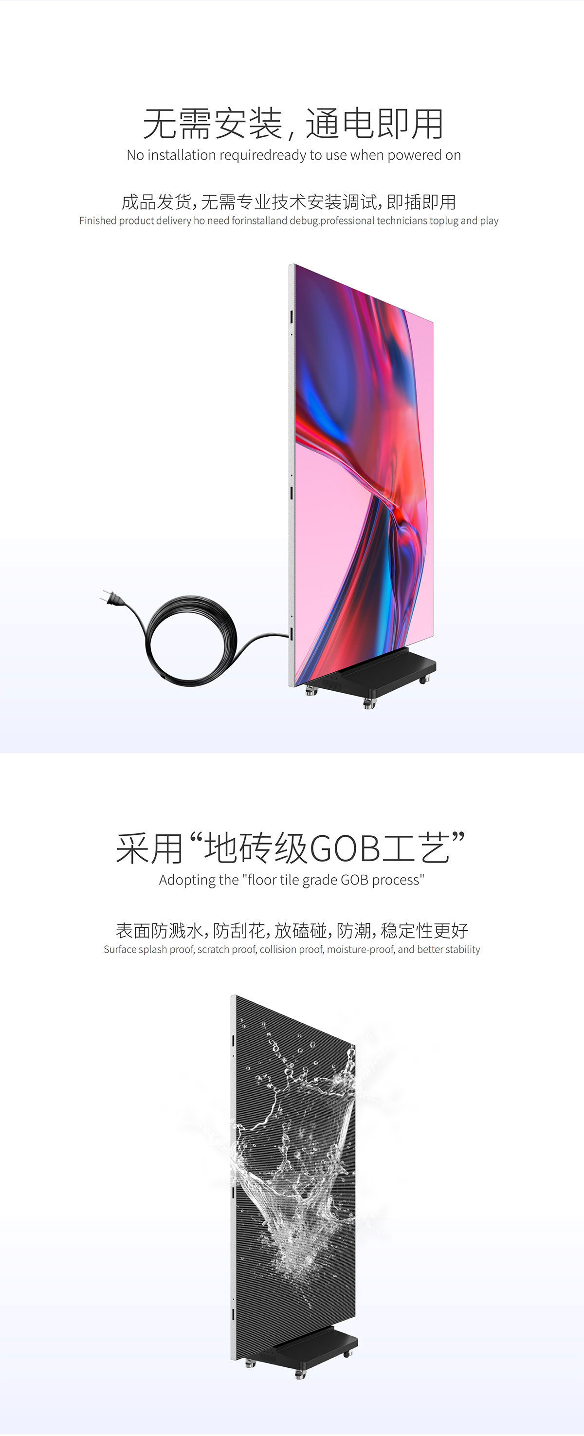 8、SMD灯珠采用了“地砖级”GOB工艺,防刮伤,防掉灯,表面防溅水,防潮,使用更加稳定。