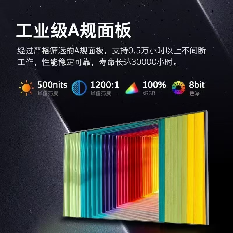 采用工业级A规液晶玻璃,支持0.5万小时以上不间断工作,性能可靠、稳定;